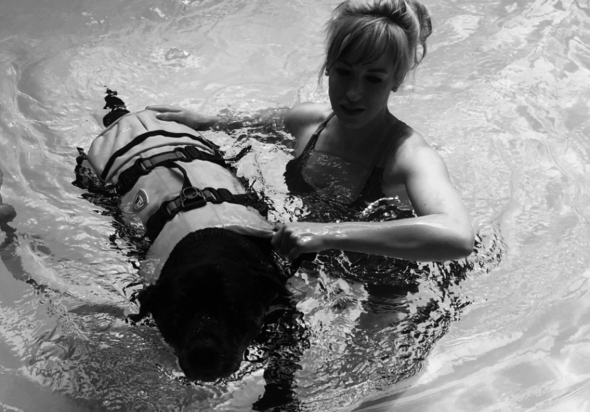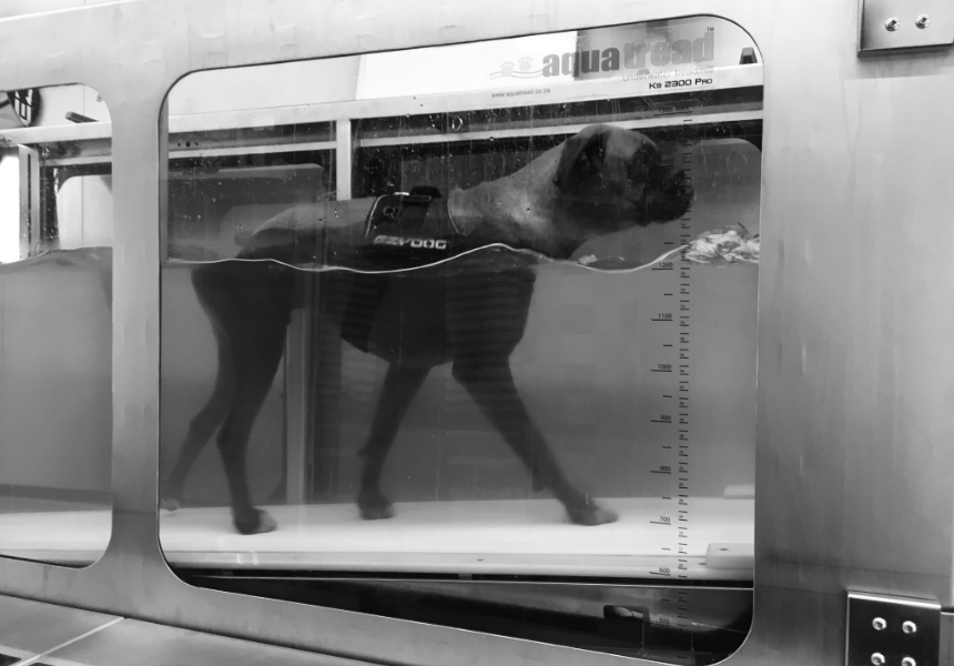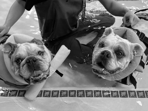 Hi, my name is Leia. I was fortunate enough to be born as a bulldog. I believe that all bulldogs share a collective soul which embodies patience, love, understanding, humour and tranquility. It’s a bit of a Buddhist thing I suppose, but I’m not much of a philosopher, I’m a dog. I was fortunate enough to become part of a loving family and I was as happy as a bulldog could possibly be, when things suddenly went very wrong for me. One evening I was watching a bit of television and decided to turn in for the night. I got up but my back legs weren’t working, try as I might. There I was, within seconds I had become an invalid. The next day found me and my parents staring at some horrible X-rays at the surgeon’s rooms. I knew I was in for extensive surgery, and my brave heart trembled. Once out of theatre I was confined to a pen for 6 weeks and my dad had to carry me whenever I needed the toilet. I felt pathetic. I had lost my strength and confidence. Soon after I completed my 6 weeks in the pen, my dad put me in the car. I didn’t like the look of this at all. The last thing I wanted was more hospitals and more pain. We arrived at something that looked like a huge fish tank with a pleasant looking lady inside, a mermaid perhaps. I was asked to join the mermaid and the fish tank was filled up. The ground started moving and I had to walk through the water. Although nice and refreshing it was damn hard work. I couldn’t figure out what the purpose was. Weeks went by with me slaving away in the fish tank and my father encouraging me and the mermaid dishing out snacks to keep me moving forward. I started to feel my strength improving, my confidence building and my spirits lifting. The mermaid measured my leg muscle and it had gained 2,5 centimeters. The fish tank and the mermaid have become my friends and they have really changed my life. It has become part of my weekly routine and when dad puts me in the car I am all smiles. My nightmare has ended and when I sleep at night I dream of cool water, a mermaid and being strong and healthy.